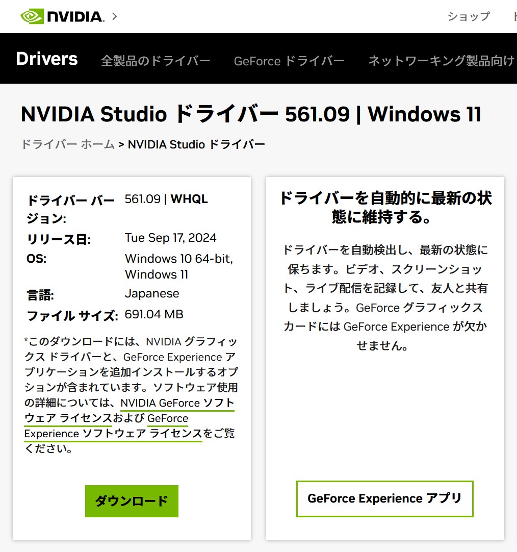 NVIDIA は、アドビアプリケーション内のランダムクラッシュの原因となるバグを特定し、ドライバーバージョン 560.70 で修正を加えました。最新のドライバーへのアップデートを強くお勧めします。