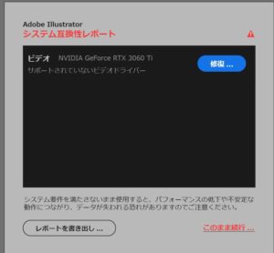 illustratorも、アラートなく、すっきり立ち上がるようになった。